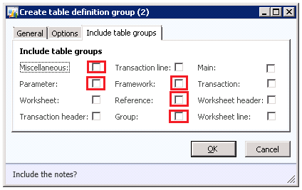 e) Do not include the tables that are in the Transaction, Transaction header, Transaction line, Worksheet, Worksheet header, and Worksheet line table groups. These tables include transaction data. It can be difficult to create a duplicate environment for transaction data if the SaveDataPerCompany property of tables is set to No. For transaction date Microsoft SQL Server backup and restore mechanism is one of best option but a minor configuration changes can be made to illustrate specific Microsoft Dynamics AX features.