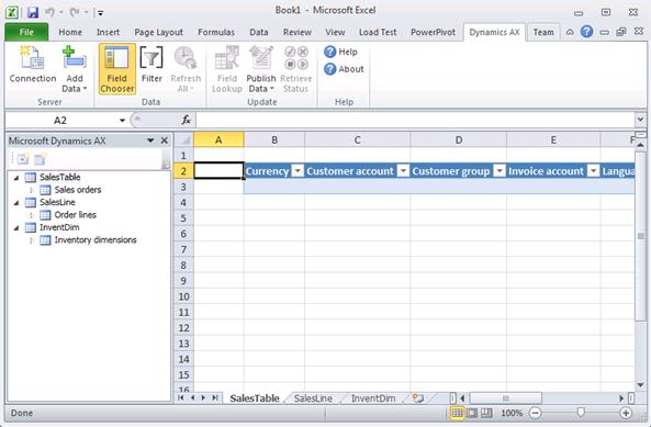 Solution: Dynamics AX 2012 ships with the number of AIF Web Service which can be used in integration scenarios. However not all of them can be used in Excel at the moment for import of data. In order to manipulate with Storage Dimensions using Excel the appropriate tables can be used. In my example I’ll import required Storage Dimensions, then import Sales Orders information and specify Storage Dimensions related to Sales Order line.
