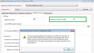 In order to bypass this error you will have to change “Maximum buffer size (KB)” setting in Dynamics AX Server Configuration Utility and restart AX AOS